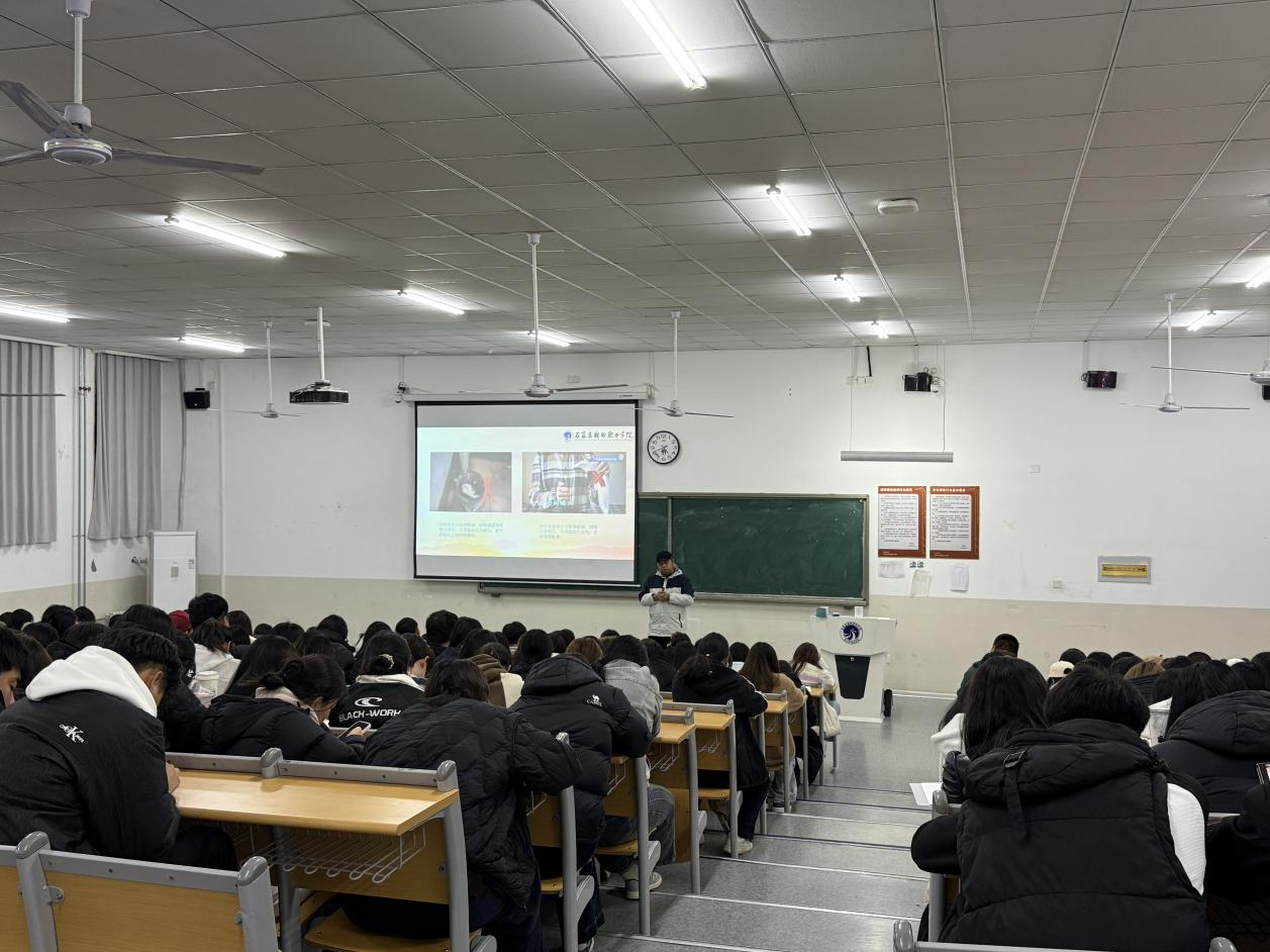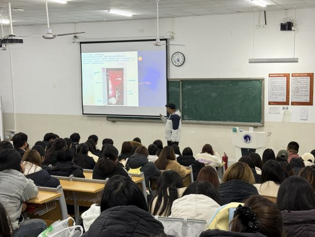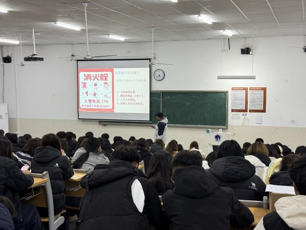 课上,安全稳定处傅潇老师用两起高校新生宿舍火灾案例开篇,直观提醒大家“安全无小事”。随后结合新生日常,重点讲三类知识:宿舍里明确 “电热毯、电煮锅” 等10类违禁电器,教大家选 3C 认证插线板、定期查线路;教室与实训室标注消防通道、灭火器位置,特别叮嘱“纸质实训资料要远离电源”;“离开宿舍查水电、睡前不把手机放枕边充电”,每一条都贴紧生活。
