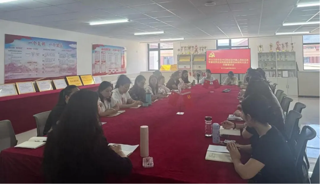 在学习会上,党总支书记任春娇带领党员们深入学习了习近平总书记讲话的主要内容,包括中国人民抗日战争的艰苦卓绝历程、中国共产党在抗战中的中流砥柱作用以及中国人民为世界反法西斯战争胜利作出的重大贡献等。党员们认真聆听,仔细记录,深刻领会讲话的精神实质和丰富内涵。