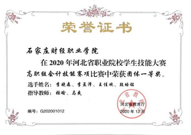 2020年河北职业院校技能大赛高职会计技能一等奖