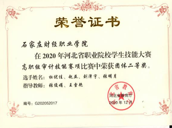 2020年河北省职业院校学生技能大赛高职组审计技能赛项团体二等奖