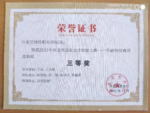 2021年河北省高校会计技能大赛金融科技赛项高职组三等奖