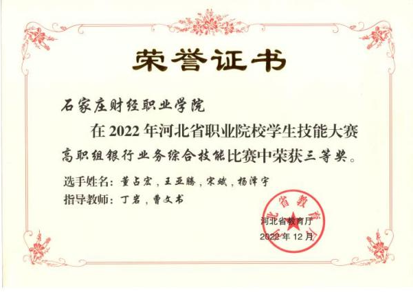 2022年河北省职业院校学生技能大赛高职组银行业务综合技能三等奖