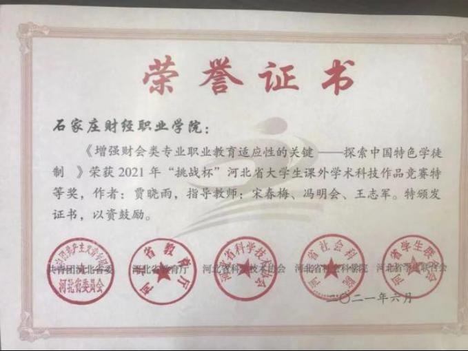 2021年"挑战杯“河北省大学生课外学术科技作品竞赛特等奖