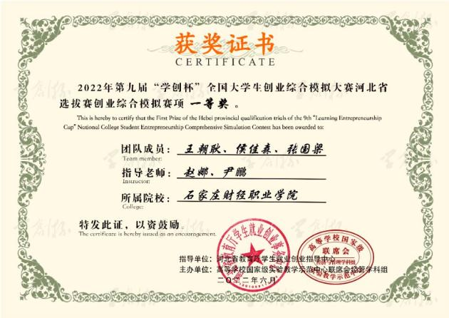 2022年第九届“学创杯”全国大学生创业综合模拟大赛河北选拔赛创业营销赛项一等奖