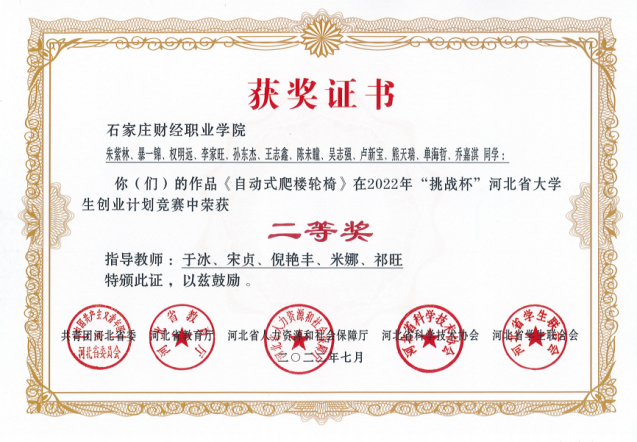 2022年“挑战杯”河北省大学生创业计划竞赛二等奖