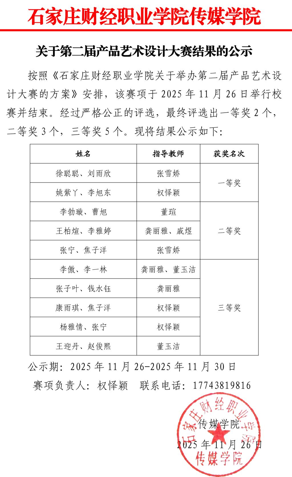 关于公布2025年第二届产品艺术设计大赛结果的公示