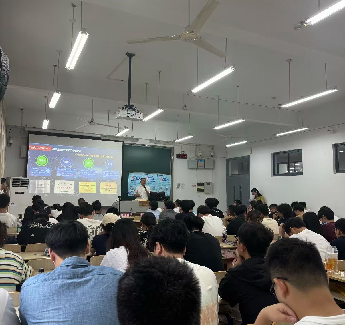 同学们热情高涨,身着轻便的春装或夏装,早早来到教室,认真聆听,不时低头在笔记本上记录要点。在互动环节,大家踊跃提问,与企业代表就岗位具体职责、职业发展路径、薪资待遇等问题展开深入交流。企业代表们耐心解答,现场气氛热烈而融洽,仿佛夏日里的一股清流,给人带来希望与活力。