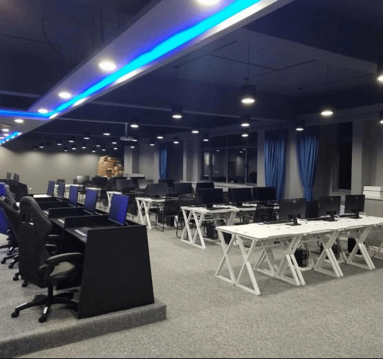 电竞实训教学区,作为学生日常上课教学的核心区域,以电竞实训室课教学使用为主,同时肩负赛后复盘分析、赛事流程策划、比赛数据分析等功能。教学区所配套的电脑、外设、桌椅设施均与高端电竞网咖看齐,使学生们能在一种轻松愉悦的气氛中享受电竞教学,感受电子竞技的魅力。