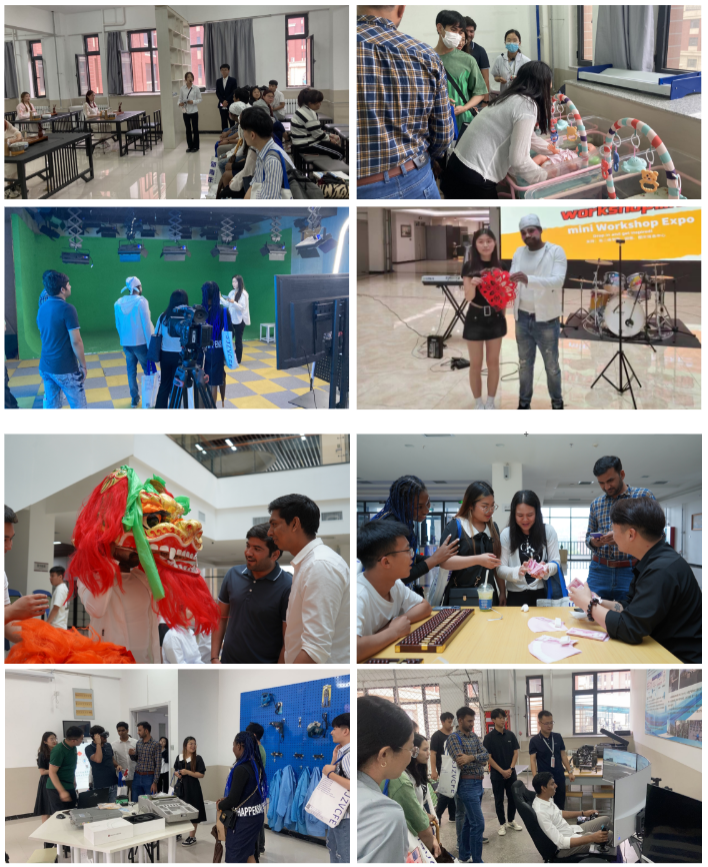 随后,留学生团队参观了各二级学院的实训室。了解了学校在专业建设方面的成就,并参与了职业教育实训体验。