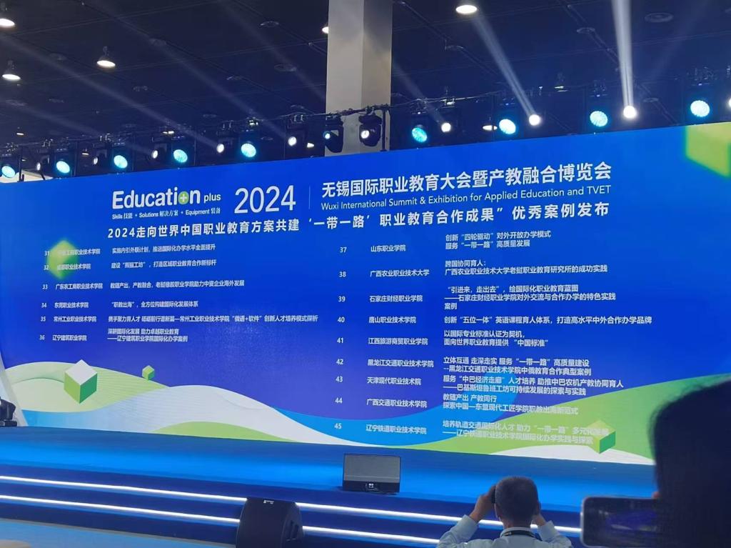 在9月12日的2024 EducationPlus无锡国际职业教育大会暨产教融合博览会上,开云官网案例“‘引进来,走出去’,绘国际化职业教育蓝图——开云kaiyun登录入口对外交流与合作办学的特色实践”入选“2024走向世界中国职业教育方案——共建‘一带一路’职业教育合作成果”优秀案例。