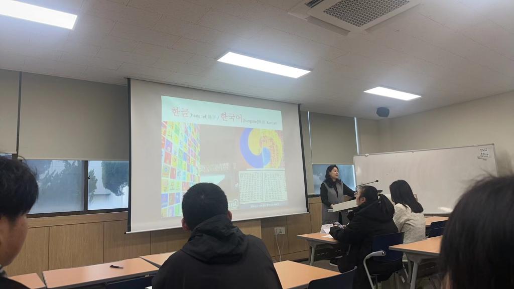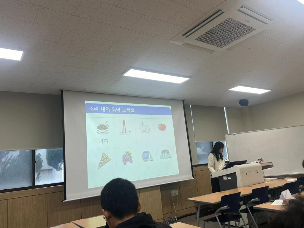东明大学的韩国语教师在给学生上韩语课