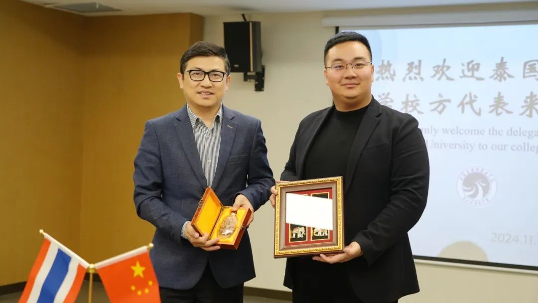 会上,两校领导分别详尽地介绍了各自学校的办学概况、教育特色以及在国际合作方面所积累的宝贵经验。双方围绕共建特色专业、优化人才培养路径等核心议题展开了深入而富有成效的对话与交流。赵振新助理指出,中泰两国在职业教育领域拥有深厚的合作基础,两校可以依托各自优势专业开展联合人才培养。江军院长表示,泰国碧差汶皇家大学希望与中国高职院校开展长期实质性合作,联合开展学术研究和学生交流项目,共同提升国际化水平与教学水平。会后,两校达成了初步合作意向并签订了合作协议。这一协议的签订标志着双方将正式开启深度合作的新篇章,共同致力于打造具有影响力的优质教育合作项目以及丰富的人文交流项目,为增进中泰两国在教育领域的相互理解和友谊贡献力量。