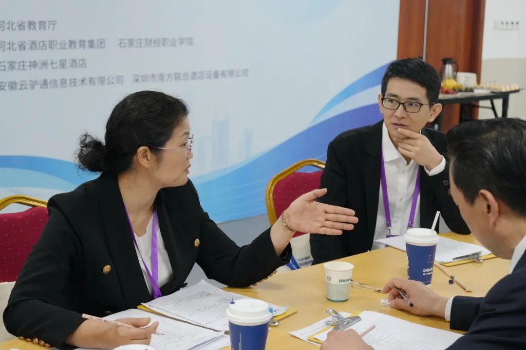 在大赛点评会上各位裁判组组长先对比赛各模块进行点评,袁广杰教授点评了前厅接待赛项;邓英教授对选手中餐服务赛项进行点评;谭金凤教授对西餐服务赛项进行点评,裁判针对比赛组织、赛程环节、选手表现和参赛细节进行了中肯分析,对指导教师和学生提出了期望和要求;最后裁判长胡晓博士对大赛整体进行点评总结,从分析“三种关系”到职业教育定位和类型培养,为河北省职业技能大赛水平提升和酒店行业未来发展指明了方向,参赛院校师生在大赛中切磋技艺、交流学习、共享经验,气氛融洽而热烈。