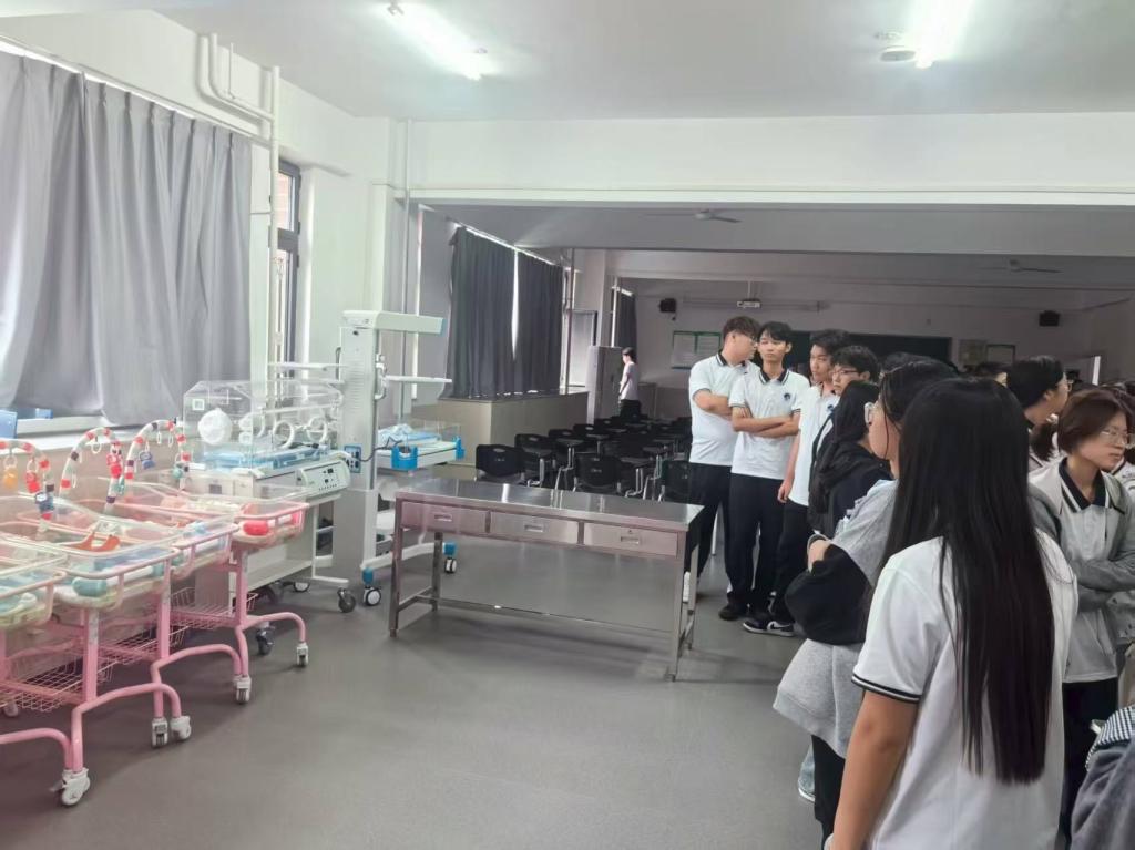 下午,新生前往实训中心。负责人介绍,该中心2021年6月投用,含五大功能实训室,是理论转实践的关键平台。在基础护理实训室,专业课教师展示全功能护理人、高仿真静脉穿刺手臂等设备,说明可开展生命体征测量、CPR等训练,还演示智能录播一体机的课程直播功能;在无菌操作实训室内,专业课教师指着10套无菌操作单元,讲解无菌溶液配制等项目,强调“无菌是护理底线”;在临床综合实训室里,专业课老师介绍心肺复苏AI科普机器人的交互反馈功能,以及海姆立克AI科普机器人、AED训练机等设备,说明承担的急救培训任务;在医疗机构模拟实训室中,专业课教师带新生看治疗区、急诊区,演示入院护理流程,讲解心电图测量等项目;在妇儿保育实训室内,老师展示婴儿蓝光箱,介绍妇科检查、小儿心肺复苏等实训内容。