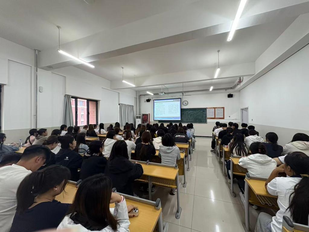 随后,王若兰聚焦“临床实践与职业备考”,结合自己在医院多科室实习的经历,为新生提供实习指导。“实习是将理论转化为实践的关键阶段,每个科室都有独特的学习重点。” 王若兰详细介绍了自己在内科、外科、康复科等科室的实习收获,从如何快速适应科室节奏、与患者有效沟通,到精准掌握护理操作技巧,她都毫无保留地分享经验。谈及护士资格证考试,她强调:“备考要趁早,制定科学的复习计划,注重真题练习与知识点归纳,同时结合临床实习加深对考点的理解,才能事半功倍。” 她还现场分享了自己的复习笔记与备考资料,赢得新生阵阵掌声。