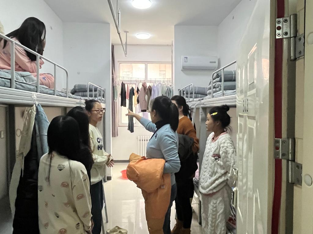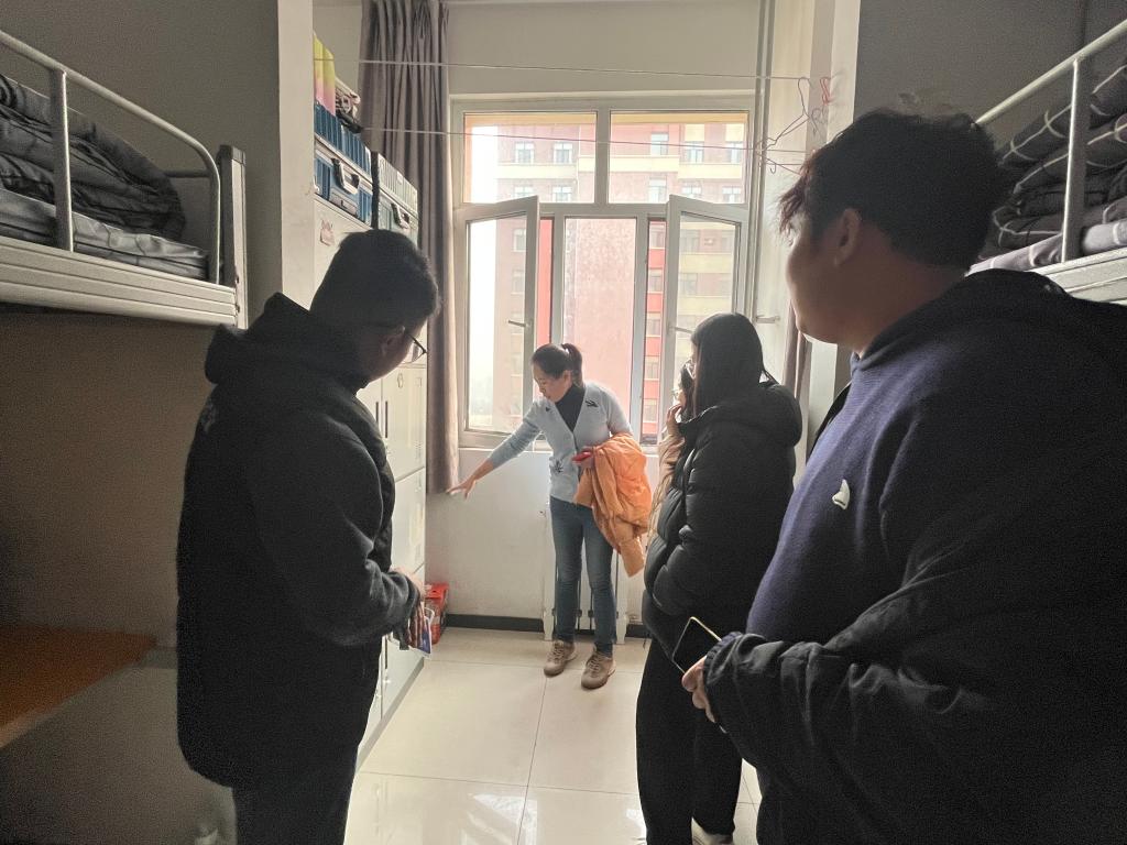 在检查过程中,开云官网党总支书记郝艳在与同学们亲切交流,询问他们的学习和生活情况,关心他们在宿舍生活中遇到的问题。对于发现的安全隐患,郝艳在书记和辅导员们现场提出整改要求,并督促学生立即整改。