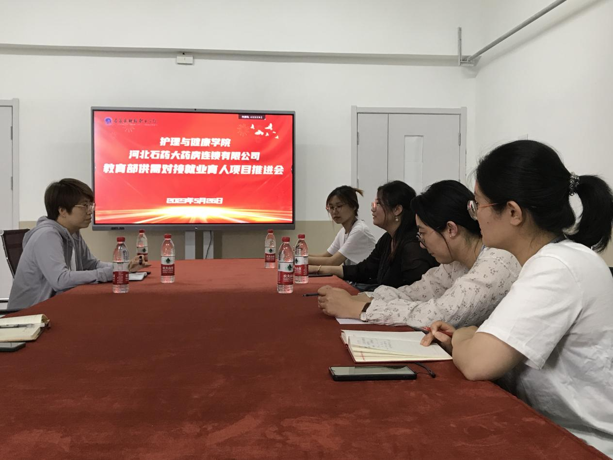 为落实党中央、国务院“稳就业”“保就业”决策部署,推动校企合作、产教融合,推动人才培养与就业有机联动、人才供需有效对接,推进落实教育部“供需对接就业育人”项目。5月26日特邀河北石药大药房连锁有限公司人事部经理丁柔等来到开云kaiyun登录入口进行企业宣讲并就“供需对接就业育人项目”的推动进行深度探讨。护理与健康学院院长乔赛男等一行人对她们的到来表示欢迎。