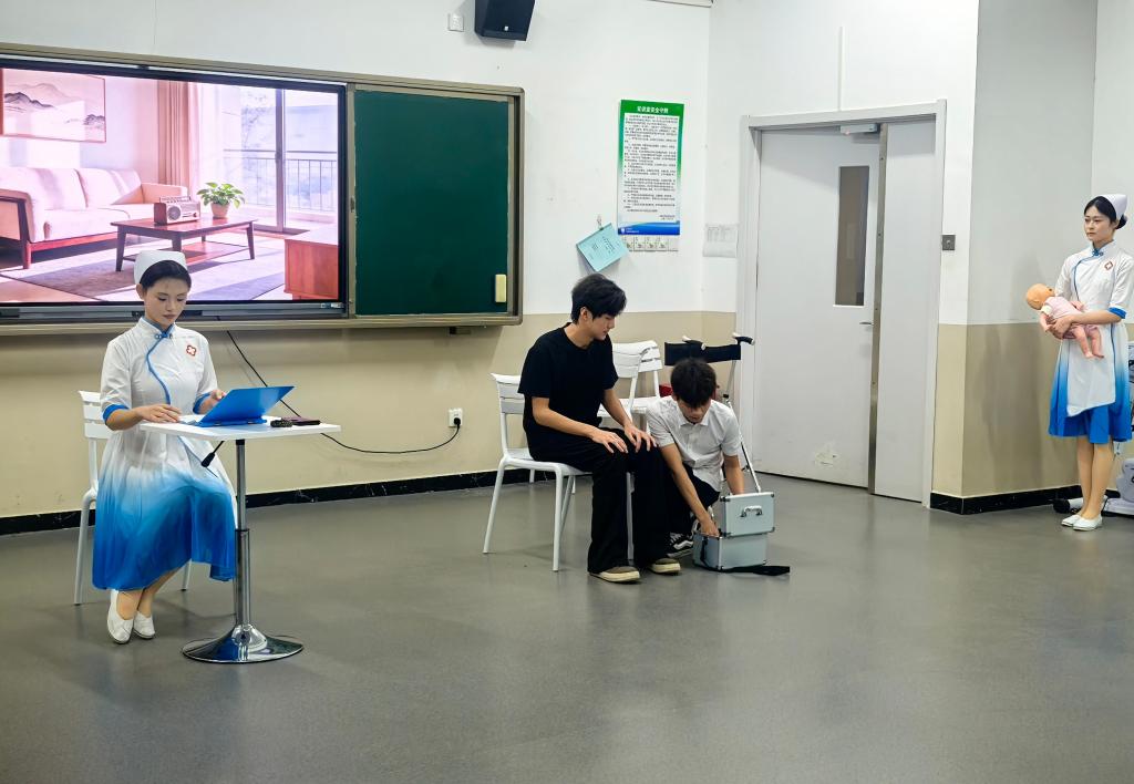 参赛学子全力以赴,主动放弃休息时间投入高强度集训,在理论学习中查漏补缺,在技能训练中精益求精,从仪容仪表细节到团队协作默契,对每一个环节都反复打磨、精益求精。赛场之上,选手们沉着应战,团队形象展示中,选手们着装得体、动作规范,尽显护理学子良好风貌;礼仪情景模拟演绎自然生动,将职业礼仪的温情与专业特质展现得淋漓尽致,赢得评委一致认可。