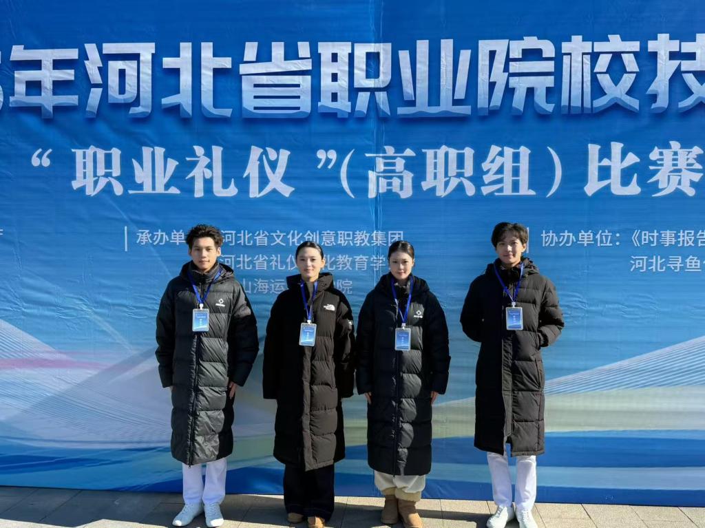 近日,由河北省教育厅主办,河北省文化创意职业教育集团、河北省礼仪文化教育学会与唐山海运职业学院联合承办的2026年河北省职业院校技能大赛“职业礼仪”(高职组)赛项在唐山海运职业学院落幕。护理与健康学院与交通工程学院跨界协作,组建了由护理与健康学院王嫣然、刘小芳老师及交通工程学院祝嘉婧老师共同指导,24级护理专业马晓冉、25级护理专业景家研、徐成成、鲁文起同学组成的参赛团队,在全省多支队伍的激烈角逐中脱颖而出,斩获省级二等奖,为校争光。