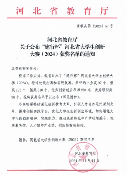 近日,河北省教育厅公布了《关于公示“建行杯”河北省大学生创新大赛(2024)获奖名单》,开云官网参赛团队在“青年红色筑梦之旅”和“职教赛道”共获得2金2银14铜的佳绩,创造了历年来省级决赛最好成绩,同时“职教赛道”2个金奖项目顺利入围国赛,获奖比例及个数再创历史新高。