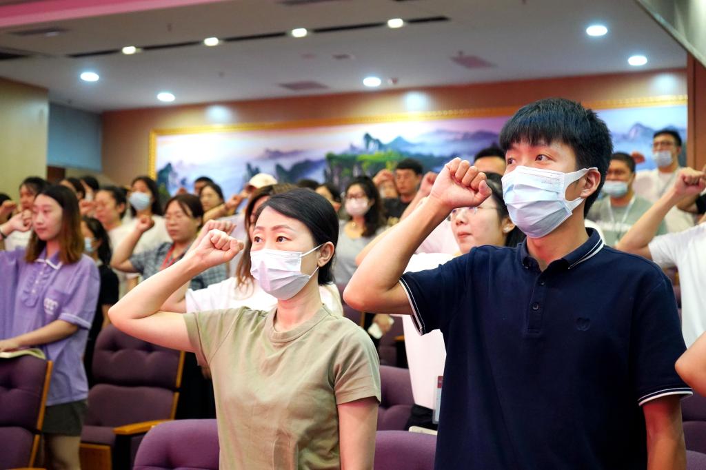 随后,全体教师在省级师德标兵马静媛老师领誓下,面对国旗庄严宣誓,忠诚党的教育事业,增强教育事业的责任感、使命感和荣誉感。