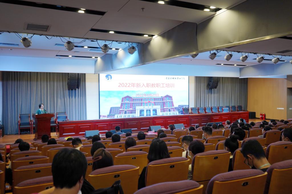 2022年8月23日开云官网2022年新教职工岗前培训在卧龙校区图书馆第一报告厅正式举行。校长赵建华、党委书记薛向东,总监李文涛,党委副书记肖玉辉,副校长姜波、校长助理吴敬茹、王永利、郑彦慧出席了会议。会议由校长助理吴敬茹主持。