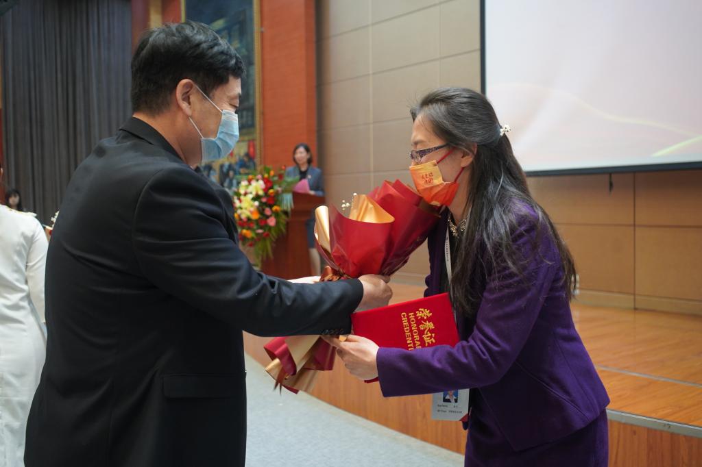校领导分别为“爱心服务者”“抗疫坚守带头人”“最美防疫先进集体”“最美坚守先进集体”获奖代表颁发证书与奖金。