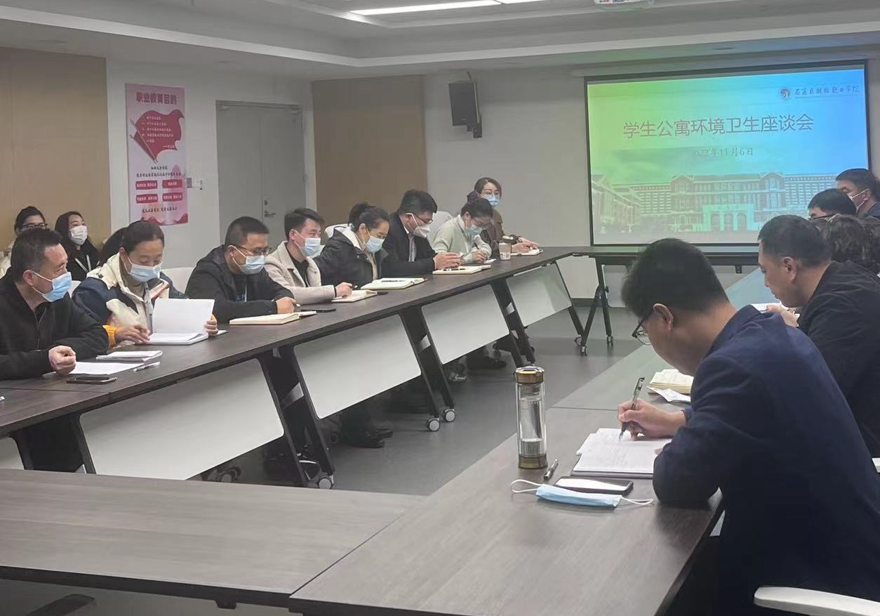 为进一步提升学生公寓公共环境卫生质量标准,2022年11月6日后勤服务集团联合学生处、各院系召开学生公寓环境卫生工作座谈会,校长助理王永利、学生处处长王志军以及各二级学院副书记、辅导员代表参加会议。