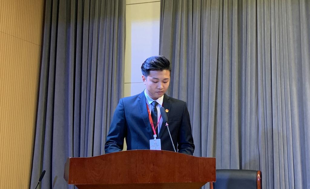 青马学员代表徐鹏璐发言。他郑重承诺,严守纪律,在此次“青马”培训班的学习中,不忘校训,励志成长为一名“有理想、善学习、讲道德、要自立、勇奋斗”的青年马克思主义者。