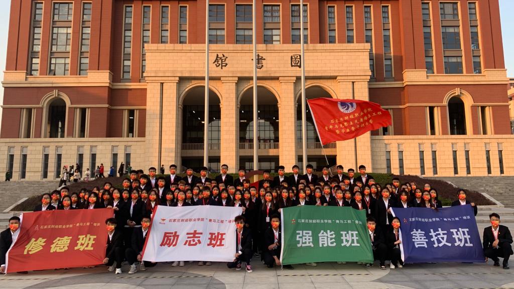 赵建华为本期“青马工程”培训班授旗,并宣布石家庄财经财经职业学院第四期“青马工程”培训班开班。