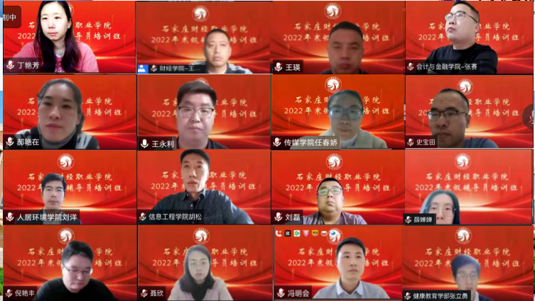为深入学习贯彻党的二十大会议精神,紧紧围绕立德树人根本任务,推动开云官网辅导员队伍专业化、职业化发展。学校积极搭建辅导员培训平台,精准施训、全员覆盖,学生处于2022年12月15日开始,精心组织开展了学校和二级学院两个层面,为期三周的寒假辅导员培训。