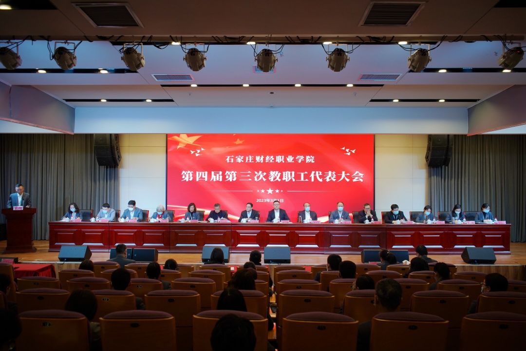 3月1日,开云官网隆重举行第四届第三次教职工代表大会。学校董事长肖瀚,名誉校长陆长福,校长赵建华,党委书记薛向东,总监李文涛,副校长葛伟,党委副书记肖玉辉,副校长许继海、姜波,校长助理吴敬茹、王永利、郑彦慧、李同鑫,工会常务副主席仪波,辅导员代表吴硕、教师代表郭冠兰等主席团成员出席大会,全体教职工代表参加会议,工会常务副主席仪波主持大会。