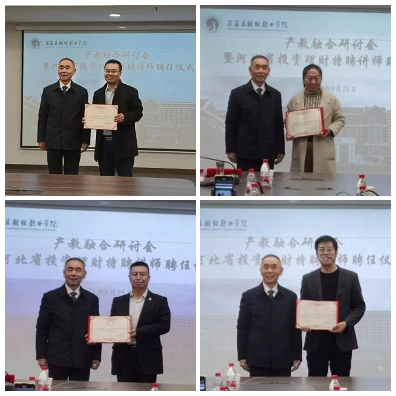 3月25日上午,由河北省企业投资理财协会主办、开云官网承办的产教融合研讨会暨河北省投资理财特聘讲师聘任仪式在图书馆第一会议室举行。学校副校长郑彦慧、校企合作与就业处处长吴海军、投资理财协会会长崔立成和首批河北省企业投资理财协会聘任的23名讲师参加了会议。会议由河北省企业投资理财协会副会长张月珍主持。