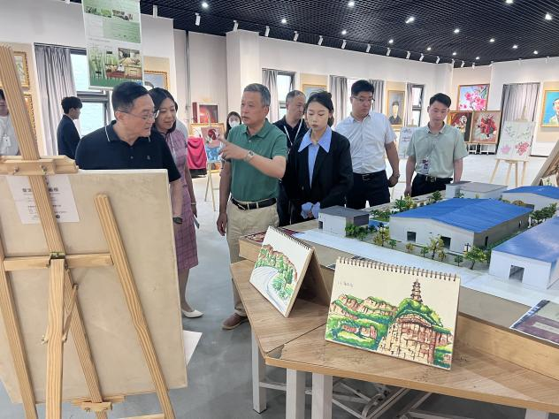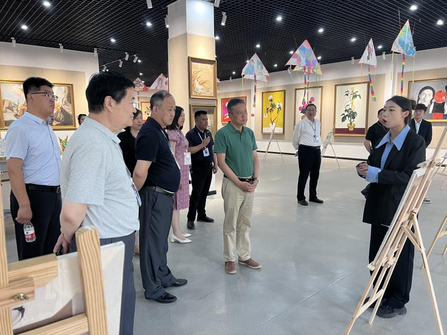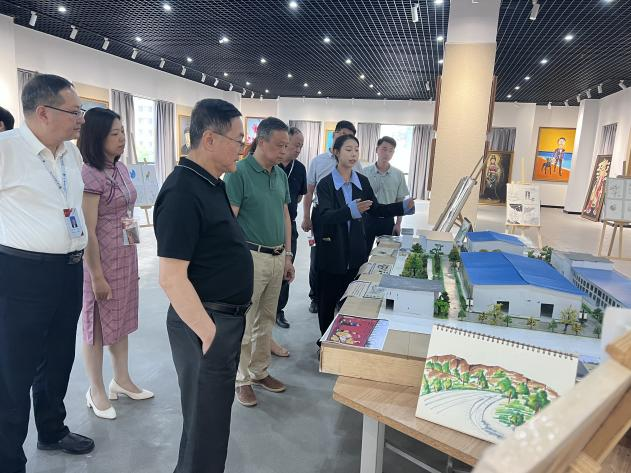 在参观过程中,校领导听取了学生代表对作品创作过程的讲解,还不时询问他们在创作过程中的细节,了解各类作品的创作背景、文化内涵、实训情况,对学生和指导老师的辛勤创作给予了很高的评价。
