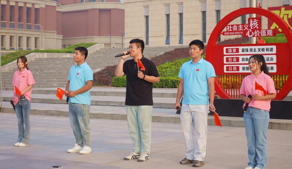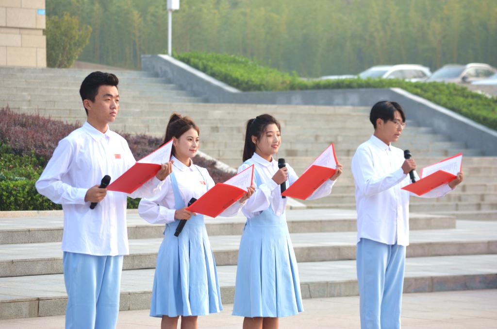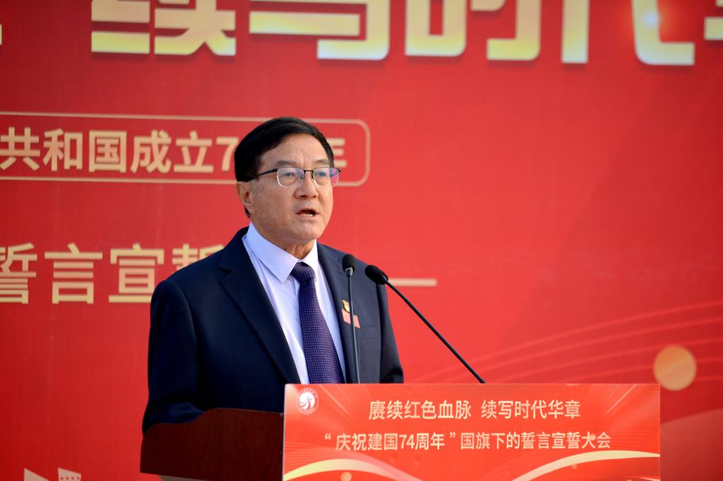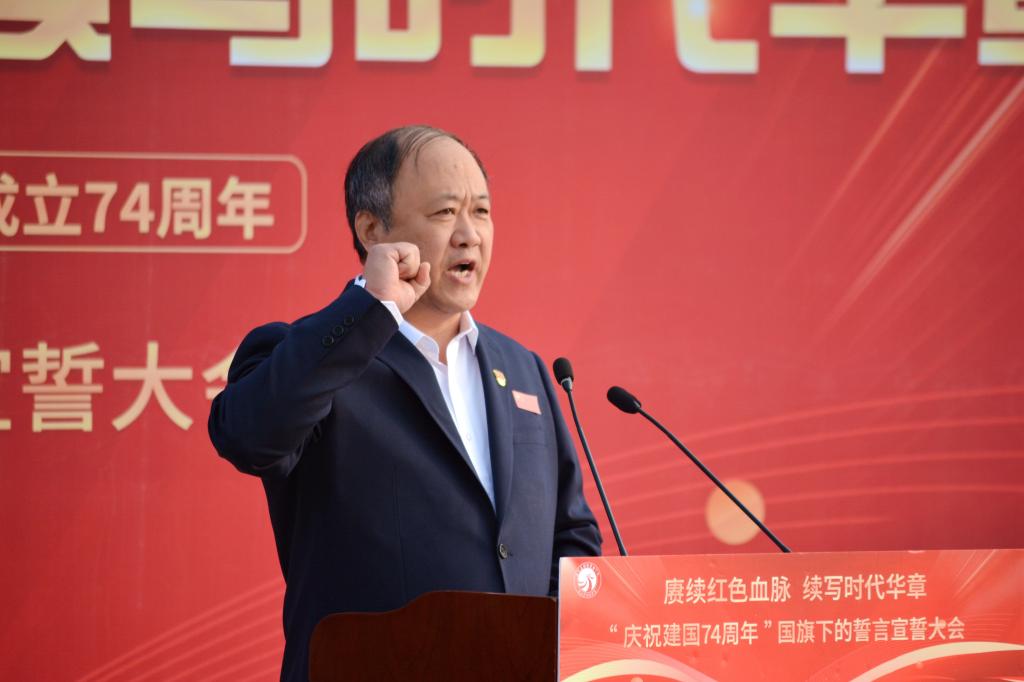 开云官网深入开展学习贯彻习近平新时代中国特色社会主义思想主题教育,在新中国成立74周年到来之际,隆重举行“赓续红色血脉,续写时代华章--国旗下的誓言”宣誓大会。校长赵建华,党委书记薛向东,党委副书记肖玉辉,副校长许继海、姜波、王永利、李同鑫,校长助理赵振新出席,全体中层干部、教师代表、学生代表参加。宣誓大会由校长赵建华主持。
