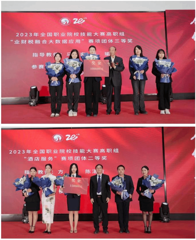 大会还对“奉献财经十五载”的教职工,以及获得学生技能大赛国赛奖项的会计与金融学院、经济管理学院两支参赛团队进行了表彰,与会校领导分别为获奖集体和个人颁发荣誉证书及奖金。
