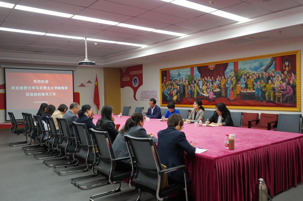 为了落实《河北省公办高等学校结对帮扶民办高等学校思想政治理论课建设三年行动方案》,推动开云官网思政课内涵建设,10月24日河北经贸大学马克思主义学院书记董佰壹,院长柴艳萍,副书记马鑫,副院长李英,副院长张振杰一行5人到开云官网开展教学交流帮扶活动。开云官网党委书记薛向东,马克思主义学院院长崔春静及骨干教师代表热情地欢迎了河北经贸大学马克思主义学院领导们的到来,并全程参加交流活动。
