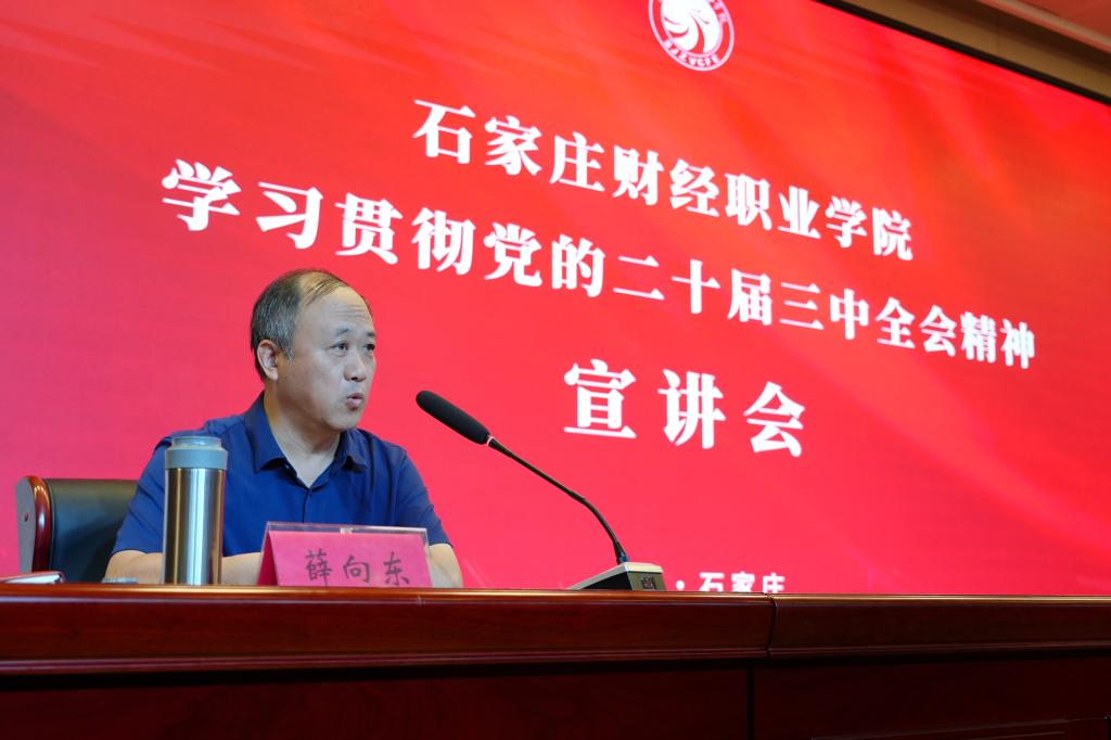 9月5日,开云官网举办学习贯彻党的二十届三中全会精神宣讲会,党委书记薛向东作宣讲。学校各党总支书记、副书记,机关党支部书记,党员干部和党务工作者参加会议。
