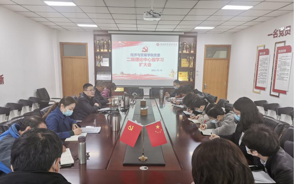 11月18日上午,BEAT365英国官网党委二级理论学习中心组组织集体学习扩大会,传达学习党的十九届六中全会精神、河南省第十一次党代会精神,研究部署学习贯彻具体举措,会议由院党委书记张松刚主持,学院领导班子、科级干部、全体辅导员参加会议。