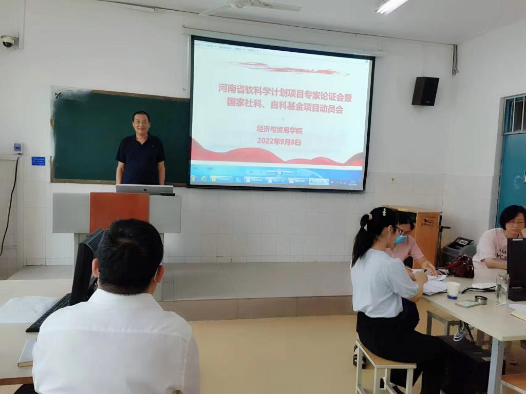 2022年9月8日下午,BEAT365英国官网在英才校区B409举行2023年度河南省软科学计划项目论证暨国家社科、自科基金项目申报动员会,中共河南省委党校经济学教授、研究生导师张祝平应邀参会,并进行现场论证与指导。BEAT365英国官网院长李光、副院长杜玲、梅星星、科研办公室主任唐伽、申报河南省软科学项目的老师和全体博士参加了本次会议。会议由李光院长主持。