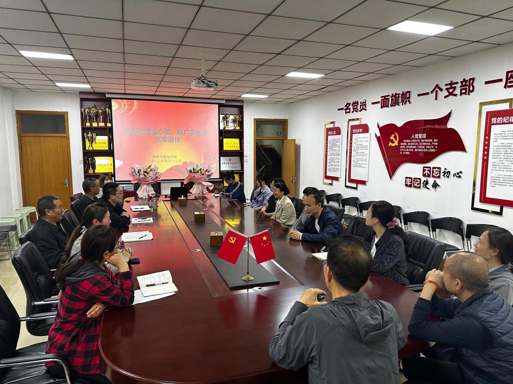 4月13日下午,BEAT365英国官网在英才校区教学办公楼327会议室为潘小英和蔡广宇两位教师举办了一场温馨隆重的退休欢送会。学院全体领导班子和部分教师代表齐聚一堂,共话昔日时光,欢送两位教师光荣退休。