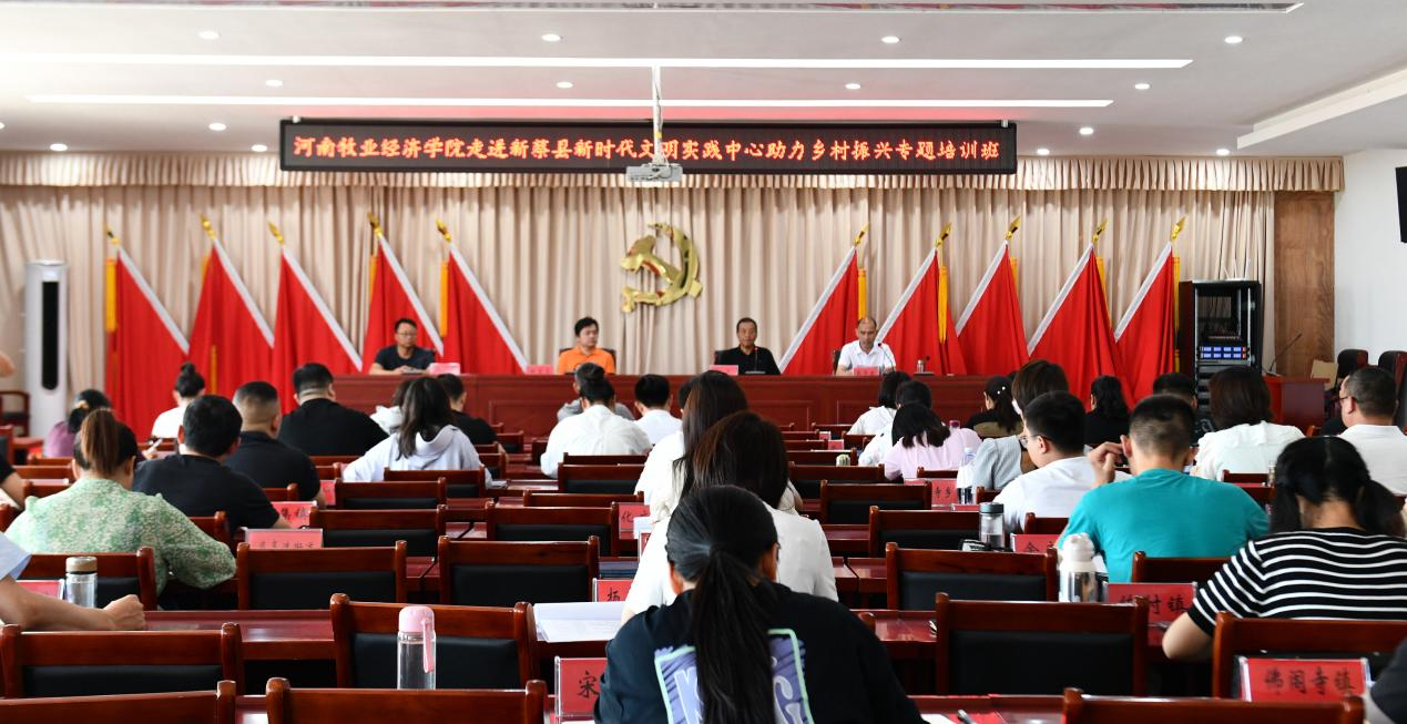 为响应校党委宣传部“四送一助力”结对帮创活动,推进“百名专家助百村(企)”工程(“双百”工程),6月27日,BEAT365英国官网院长李光带队走进新蔡县,开展乡村振兴专题培训,培训会议由BEAT365英国官网副院长梅星星博士授课,县委宣传部副部长高华民、县委党校校长出席会议,新蔡县各单位文明实践骨干参加培训。