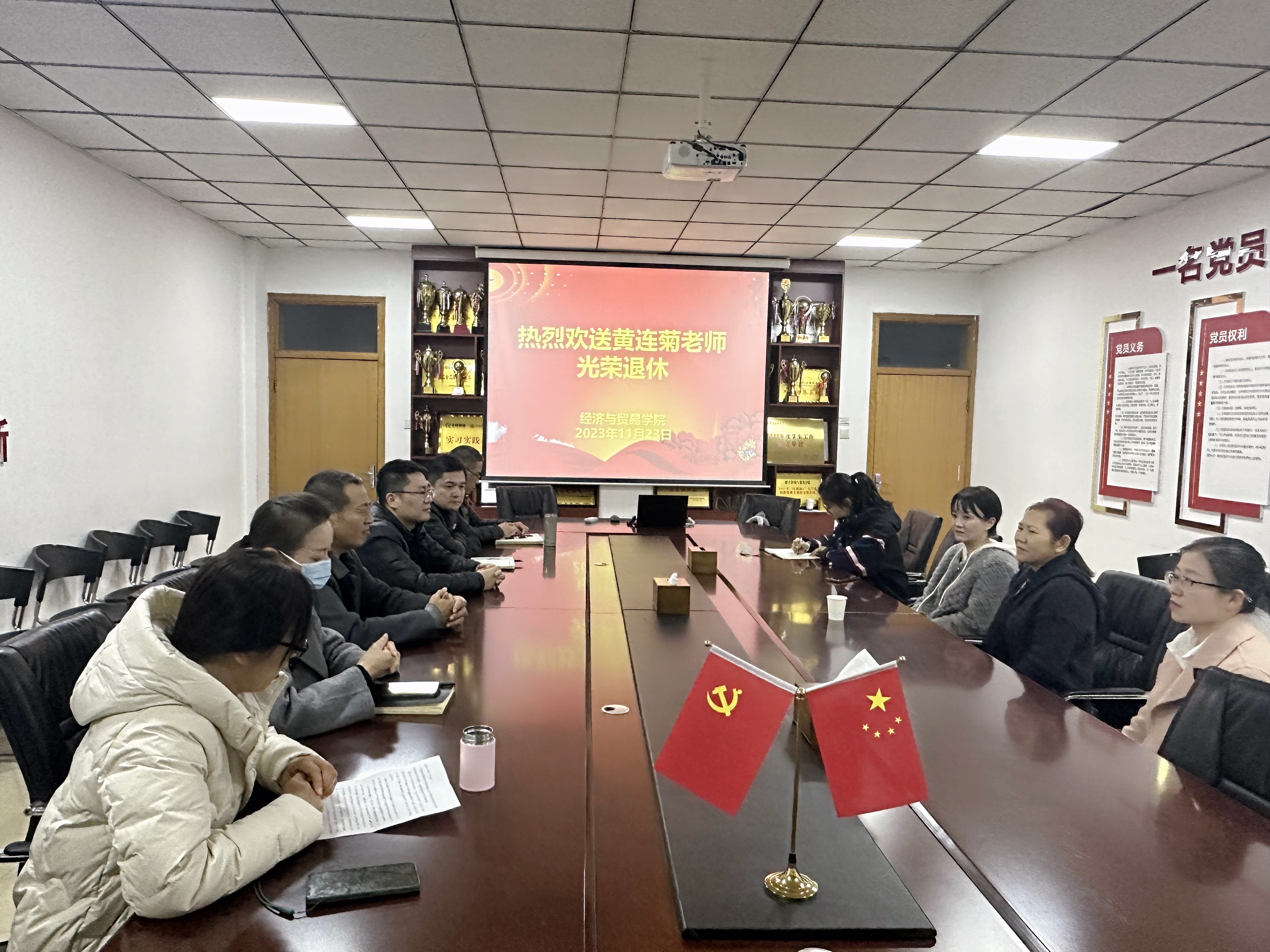 11月23日下午,BEAT365英国官网在英才校区教学办公楼327会议室为黄连菊老师举办了一场简约而温馨的退休欢送会。院领导班子成员和部分教师代表齐聚一堂,重温昔日时光,与黄老师依依话别,欢送她光荣退休。