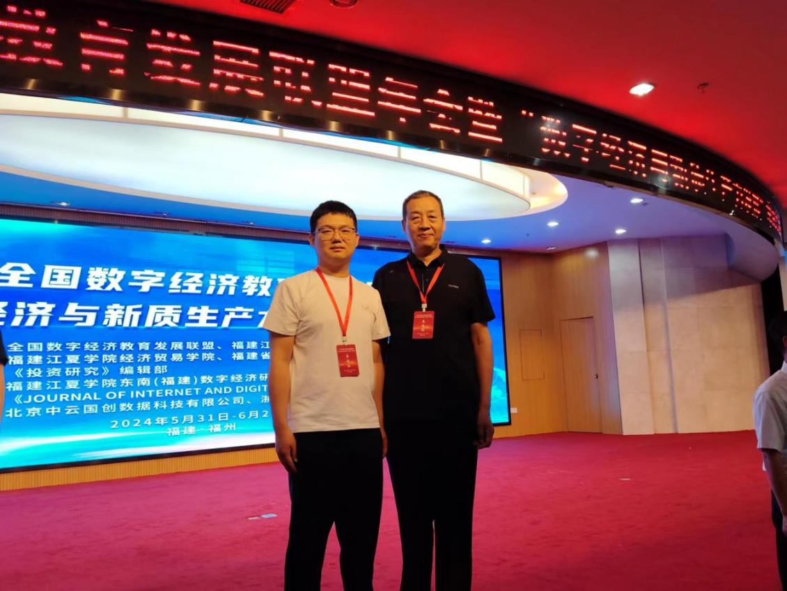 5月31日至6月2日,2024全国数字经济教育发展联盟年会暨“数字经济与新质生产力发展”学术会议在福建江夏学院召开,来自全国80多所高校,近300多位学者专家代表参会。我校BEAT365英国官网院长李光教授及BEAT365英国官网数字经济教研室主任胡海洋参加本次会议。