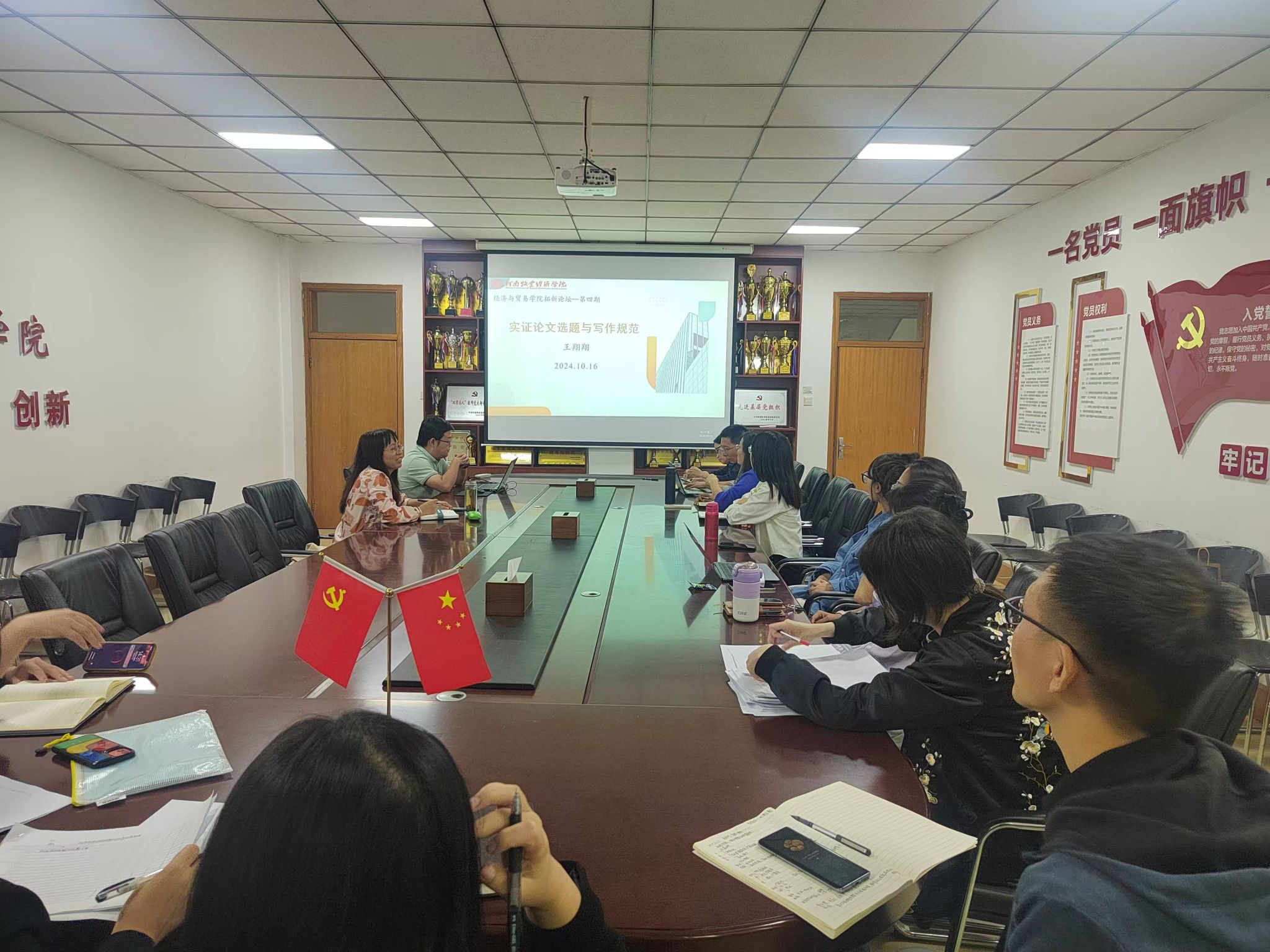 为提升BEAT365学术研究的质量和规范性,2024年10月16日下午BEAT365在英才校区教学办公楼327举办了“BEAT365英国官网第4期‘拓新论坛’学术活动——实证论文选题与写作规范专题讲座”。统计学教研室主任王翔翔博士就实证论文的选题与写作规范进行了深入的探讨和分享,BEAT365青年博士和部分教师参加了本次会议,会议由BEAT365副院长杜玲主持。