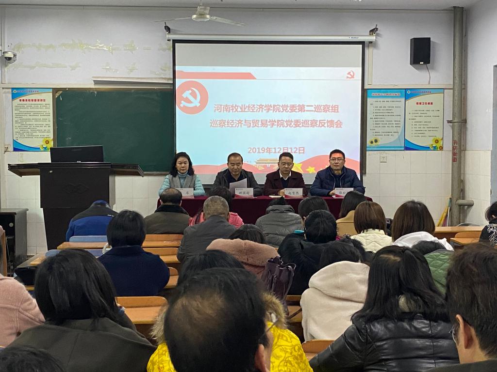 按照校党委巡察工作部署,2019年12月12日下午,校党委第二巡察组巡察BEAT365英国官网巡察反馈会在英才校区教学楼A102室召开。学校第二巡察组组长顾国超、副组长赵贺然、成员梁芩、狄波出席会议,经贸学院领导班子成员及学院全体教师参加会议,会议由经贸学院党委书记张松刚主持。
