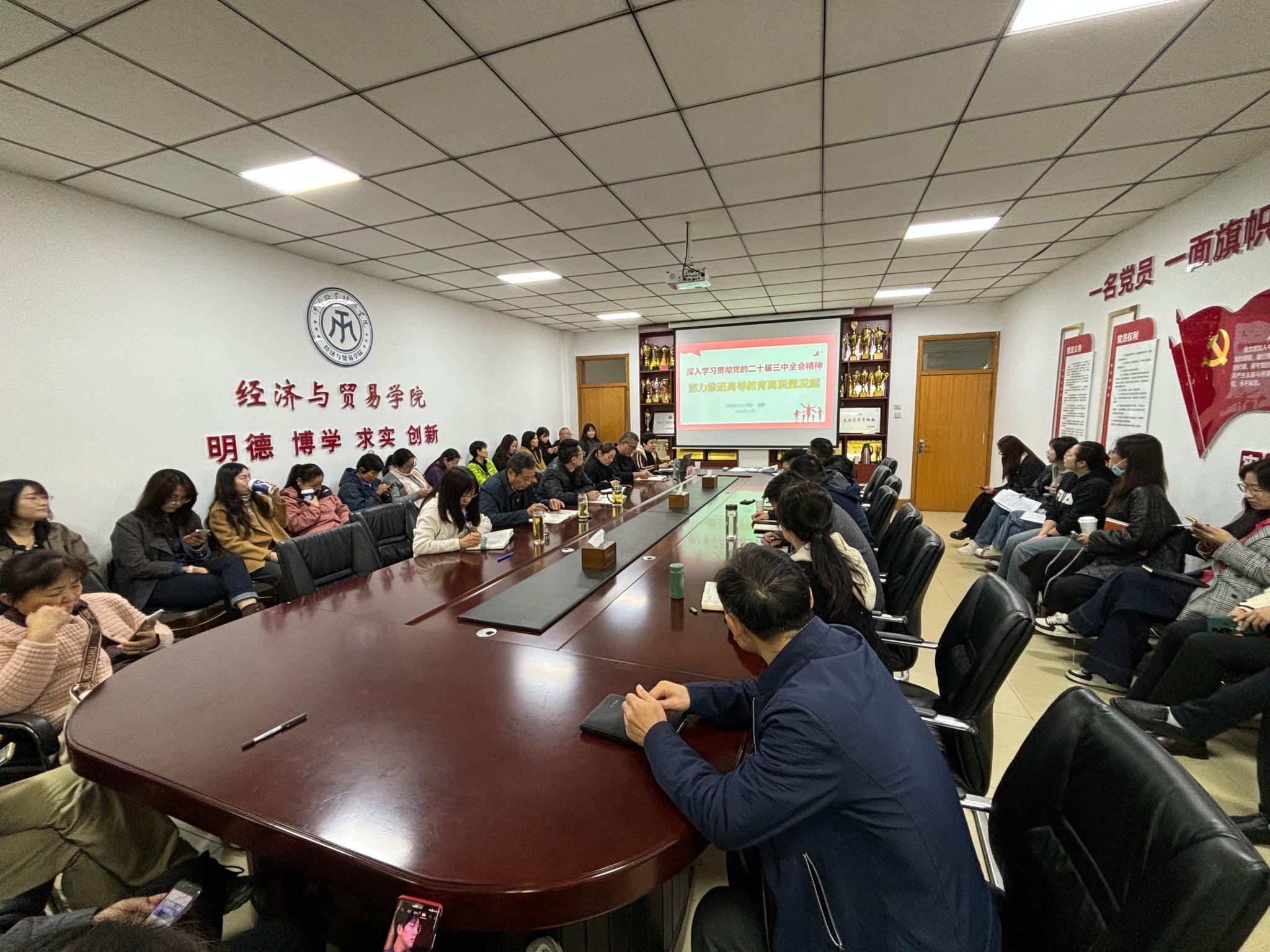 近日,BEAT365英国官网在英才校区教学楼327会议室举行学习贯彻党的二十届三中全会精神专题报告会,特邀学校马克思主义学院副院长郭霞作题为《深入学习贯彻党的二十届三中全会精神,努力推进高等教育高质量发展》的专题报告,学院全体教职工参会。报告会由院党委书记张松刚主持。