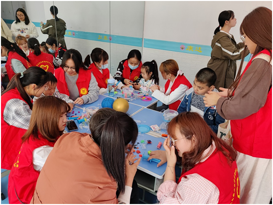活动准备阶段,志愿者们一同查阅并学习了关爱自闭症儿童的相关知识,先前参加过该项活动的志愿者为大家分享了自己与自闭症儿童相处的经验。来到康达能力训练中心后,大家再次接受了现场老师专业的培训。在专业老师的指导下,大家细致观察了自闭症儿童的日常行为,通过组织游戏,志愿者们开始慢慢融入到孩子们中间,与他们一同玩耍,为孩子们唱歌,带孩子们跳舞,手把手教孩子们画画。透过孩子们一张张灿烂的笑脸,看到他们开心幸福的样子,志愿者们也倍感欣慰。活动之余,志愿者们与自闭症儿童的父母也进行了交流,他们对大家的到来表示由衷的感谢,也希望在全社会的共同呵护下, 患有自闭症的孩子们能够健康快乐成长。
