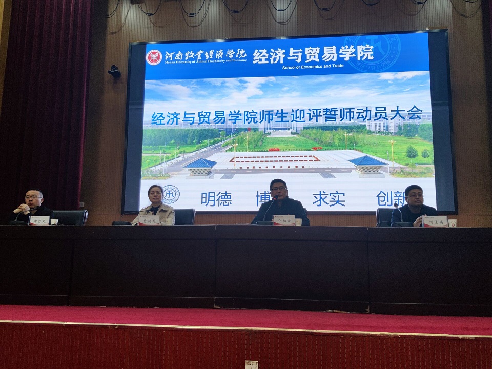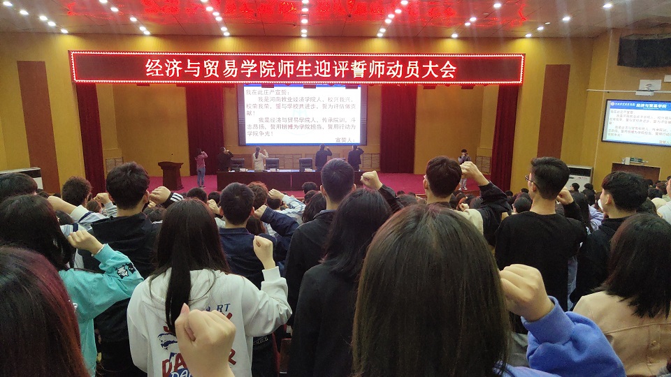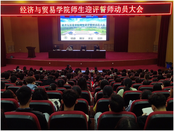 为提高同学们参与迎评的意识与积极性, 4月20日-21日,BEAT365英国官网在英才校区学术报告厅召开两场“师生迎评誓师动员大会”。BEAT365英国官网党委书记张松刚,党委副书记贾艳艳,团委书记、学工办主任刘佳楠、团委副书记、学工办副主任申作光、全体辅导员和18级、19级、20级在校生参加。龙子湖校区在校生通过在线直播方式参与。大会由院党委副书记贾艳艳主持。