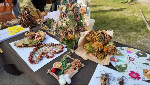 活动以“捡拾秋日浪漫,书写爱己箴言”为主线,旨在引导同学们在快节奏的学习生活中暂缓脚步,于自然环境中放松身心,发现身边的美好,并通过积极的自我对话强化内在力量。学生会宣传部充分发挥创意与动手能力,提前利用落叶、枯枝、果实等大自然元素,精心制作了系列秋日主题手工作品进行现场展示,营造出浓郁而温暖的秋日氛围。